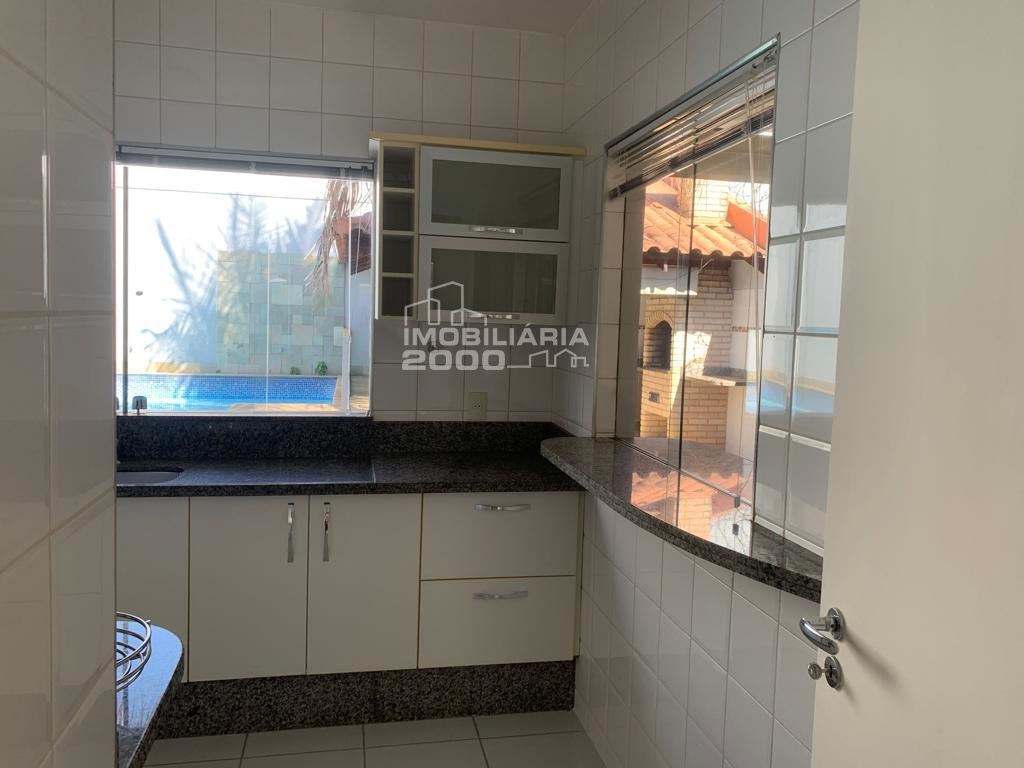 3/4 sendo 1 suite todos com armário planejados, sala, cozinha com armários, lavanderia, edícula, churrasqueira, piscina e garagem 2 carros.