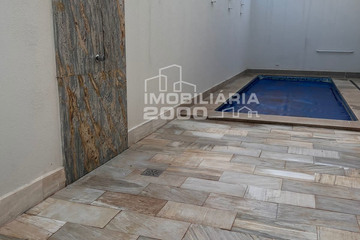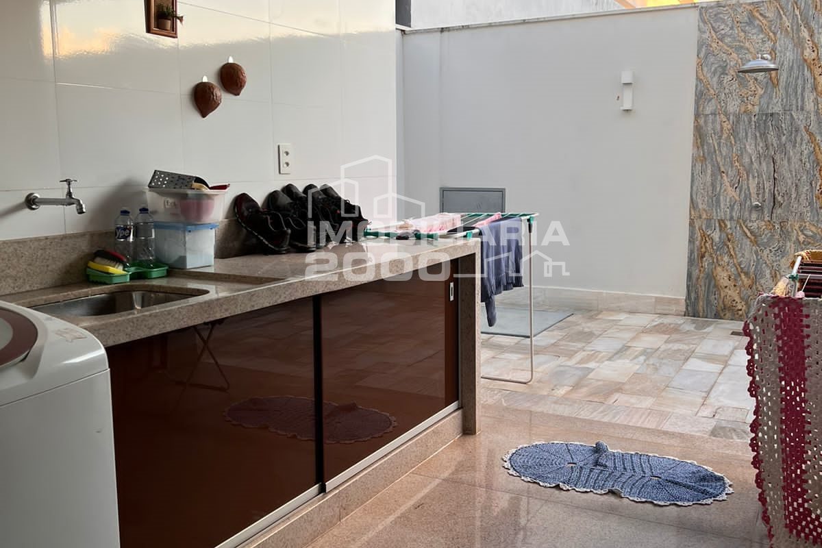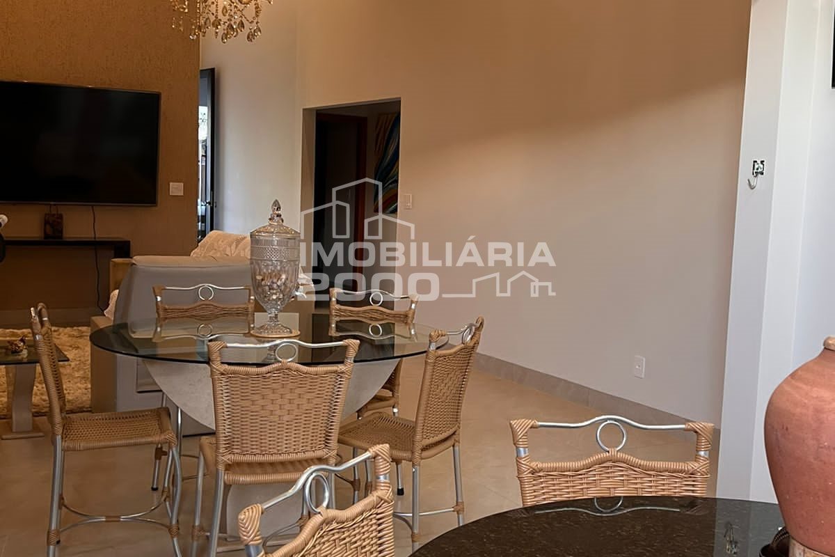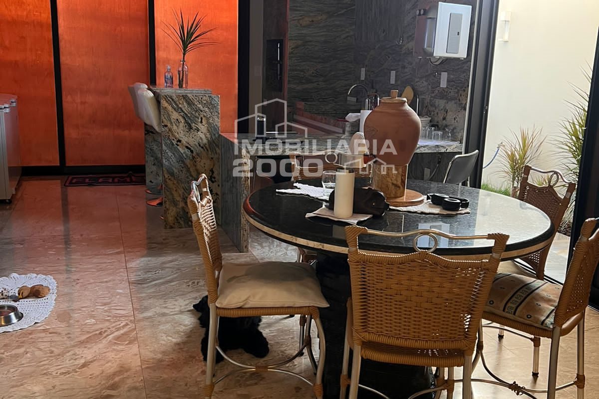 4/4 sendo 3 suítes, sala de estar, sala de jantar, banheiro, área de serviço, lavabo, área gourmet com churrasqueira, piscina quarto deposito e garagem para 2 carros.