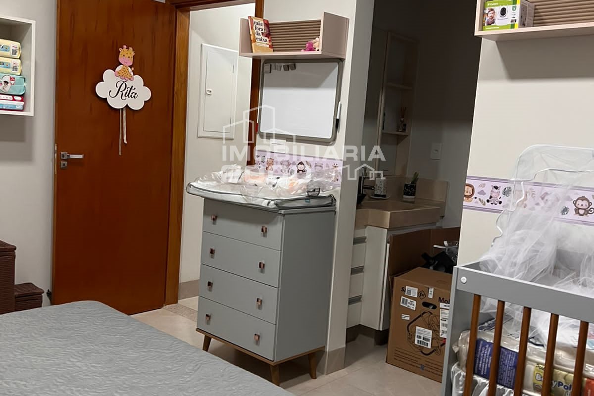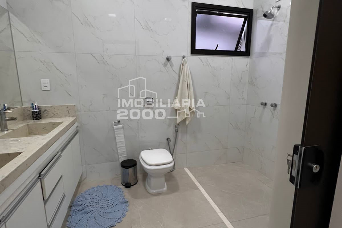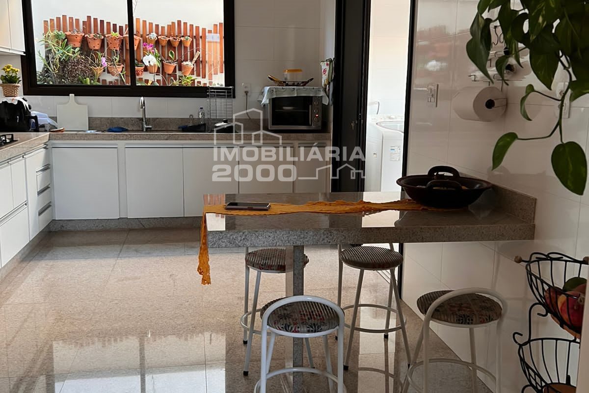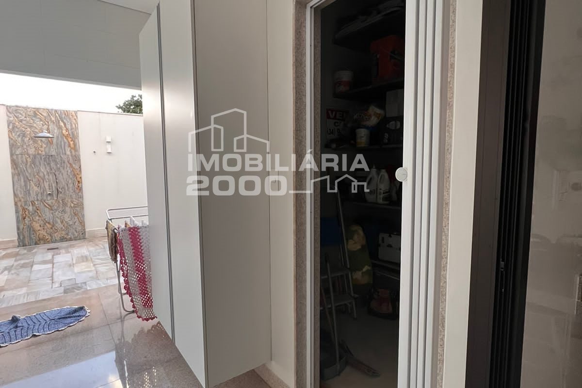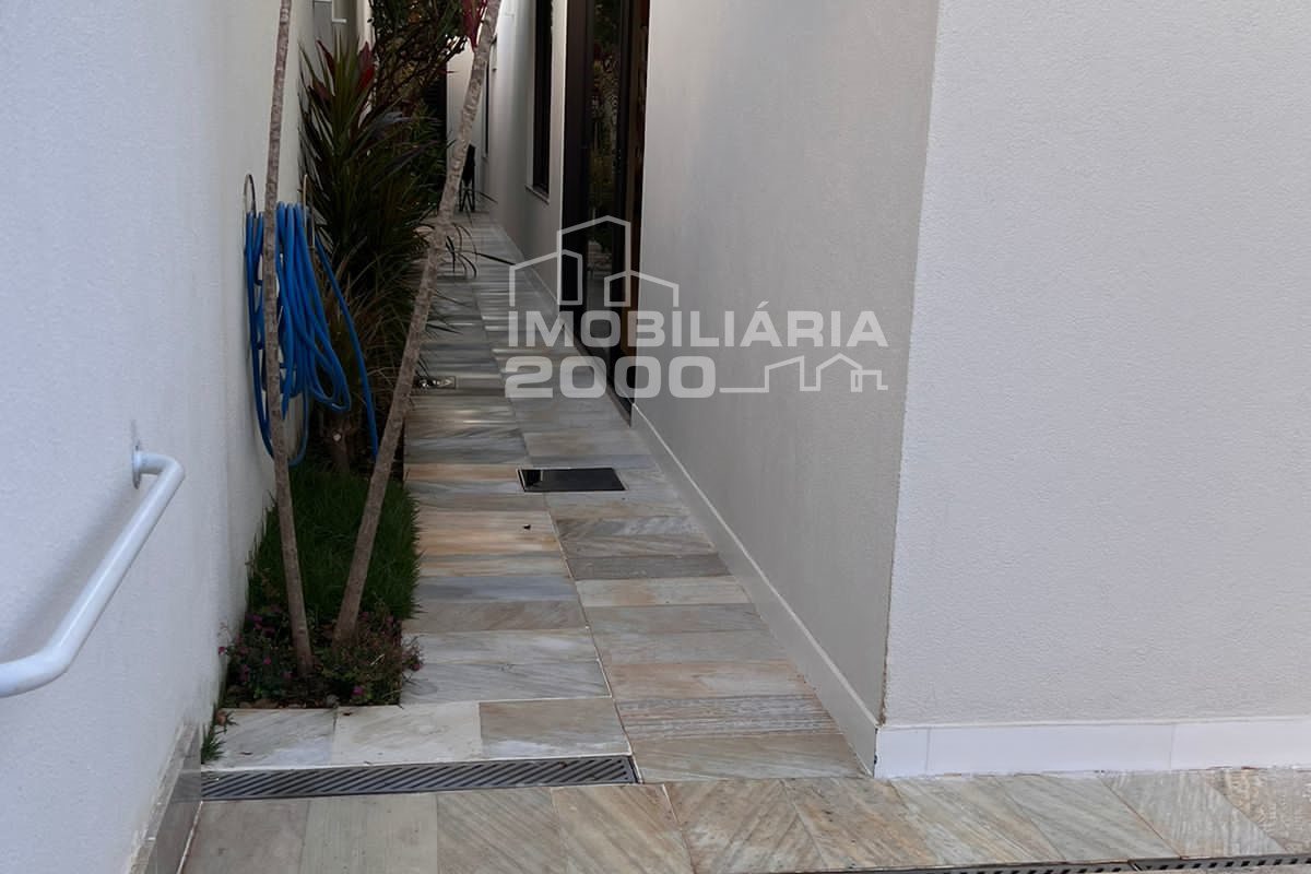 4/4 sendo 3 suítes, sala de estar, sala de jantar, banheiro, área de serviço, lavabo, área gourmet com churrasqueira, piscina quarto deposito e garagem para 2 carros.